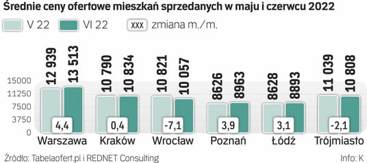 Na rynku wtórnym ceny transakcyjne wzrosły zwłaszcza we Wrocławiu (średnio do 9,2 tys. zł za mkw.), w Poznaniu (7,6 tys. zł) i w Krakowie (10 tys. zł).