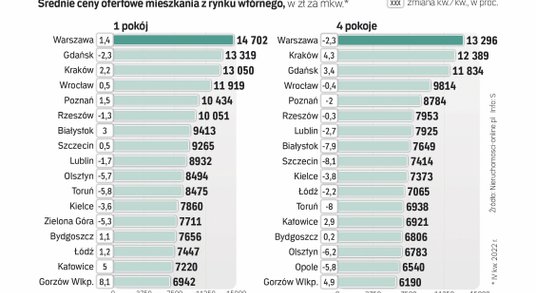 W Warszawie cztery pokoje są tańsze o 2,3 proc. (13,3 tys. zł za mkw.), w Łodzi – o 2,2 proc. (niespełna 7,1 tys. zł), w Poznaniu – o 2 proc. (niemal 8,8 tys. zł), a we Wrocławiu – o 0,4 proc. (9,8 tys. zł). – Najnowsze dane wyraźnie pokazują, że w miastach wojewódzkich najczęściej i najmocniej spadały ceny największych mieszkań. Zaobserwowaliśmy to w 12 z 18 analizowanych rynków – komentuje Alicja Palińska z działu analiz Nieruchomosci-online.pl. – Sprzedaż czteropokojowego lokalu w dobie drogich kredytów jest bardzo trudna, dlatego właściciele coraz częściej godzą się na obniżki. To wyraźna zmiana. W poprzednim odczycie po III kw. 2022 r. spadki cen największych mieszkań były nieliczne.