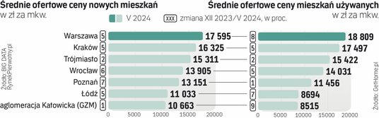 W maju nowe mieszkania zdrożały także w Krakowie (o 1 proc. miesiąc do miesiąca, do ponad 16,3 tys. zł/mkw.), we Wrocławiu (o 3 proc., do ponad 13,9 tys. zł/ mkw.) i w Trójmieście (o 2 proc., do ponad 15,3 tys. zł/mkw.).