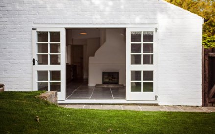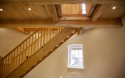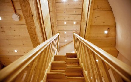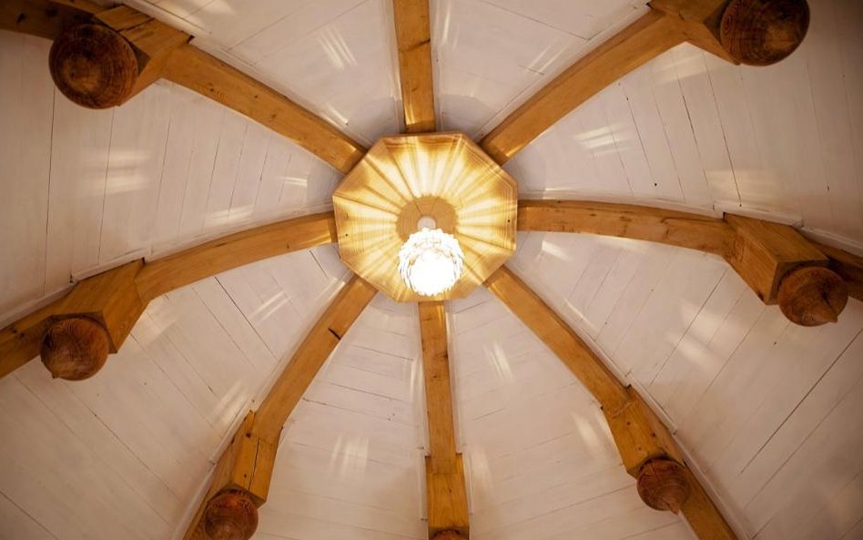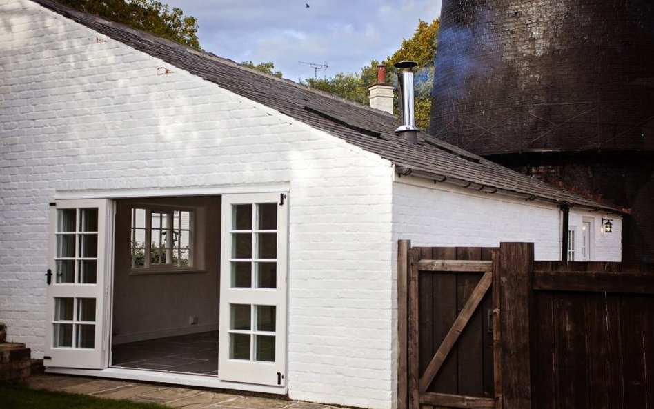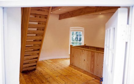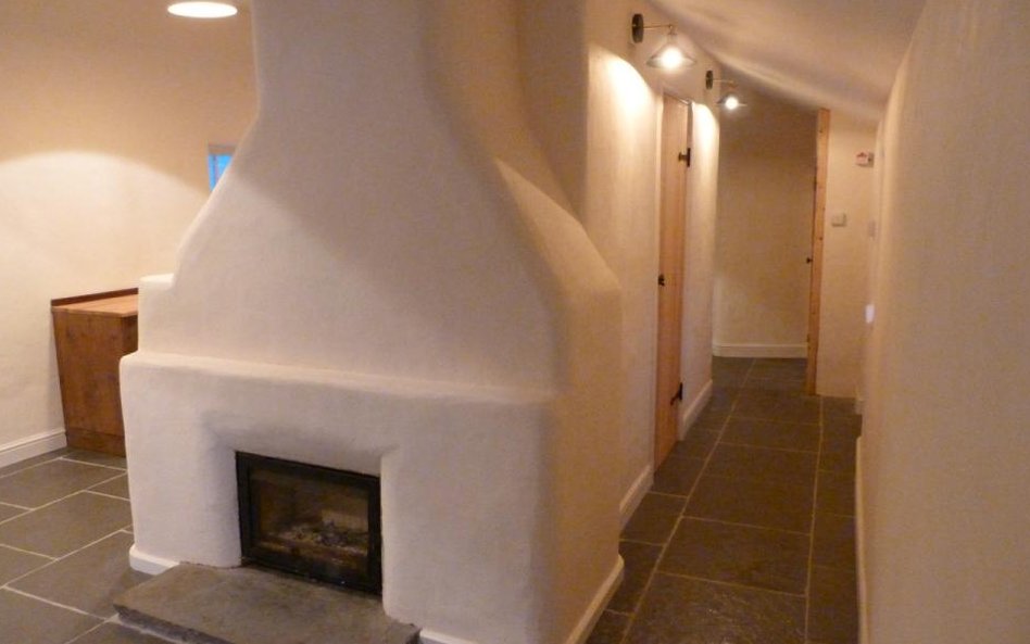 Na poziomie parteru, w dobudowanej do wiatraka części znajduje się kuchnia oraz salon z działającym kominkiem.