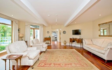 Na terenie posiadłości znajduje się też garaż na trzy samochody a wjazdu broni elektryczna brama. Dom otacza zadbany ogród z palmami, sadzawką oraz mostkiem we francuskim stylu domu Moneta.