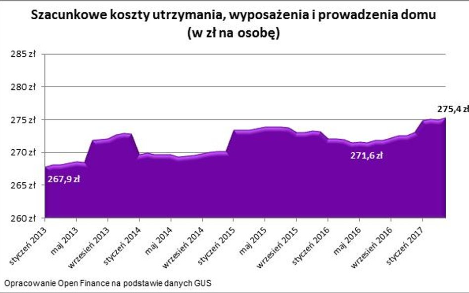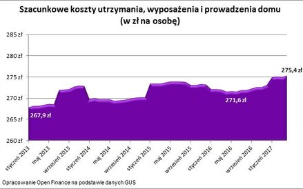 Dodaje, że uwzględniane są zaś koszty ogrzewania i nośników energii (odpowiadają za 40 proc. kosztów związanych z mieszkaniem), a ponadto m.in. wydatki na dostarczenie mediów, odprowadzenie nieczystości, zakup mebli, AGD, środków czystości czy remontów. - Efekt? Od dziesięciu miesięcy przeciętny koszt związany z dachem nad głową znowu zaczął rosnąć. W tym czasie wydatki per capita wzrosły z poziomu 271,6 zł do 275,4 zł ustanawiając tym samym historyczny rekord. To znaczy, że dwuosobowa rodzina musi wydać na mieszkanie średnio trochę ponad 550 zł miesięcznie - szacuje Bartosz Turek. - W kwietniu tego roku wyraźnie podrożały gaz i wywóz śmieci. Więcej płacono także za zaopatrzenie w wodę oraz usługi kanalizacyjne, najem mieszkań, opał, usługi związane z prowadzeniem gospodarstwa domowego i artykuły włókiennicze – wynika z najnowszej publikacji GUS. Staniały za to środki czyszczące i konserwujące oraz AGD - wskazuje analityk Open Finance.