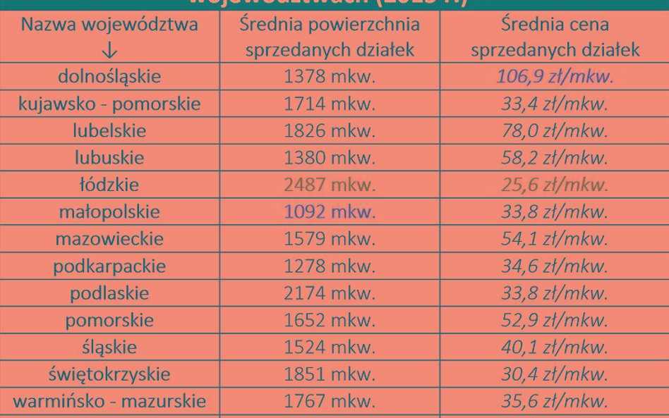 Pewnym zaskoczeniem jest fakt, że najwyższych cen nie odnotowano na Mazowszu (54,1 zł za mkw.). Wynik z Dolnego Śląska jest między innymi efektem dużej atrakcyjności osadnictwa w sąsiedztwie Wrocławia. Osób budujących nowe domy i deweloperów, nie przyciąga m.in. stolica województwa łódzkiego.