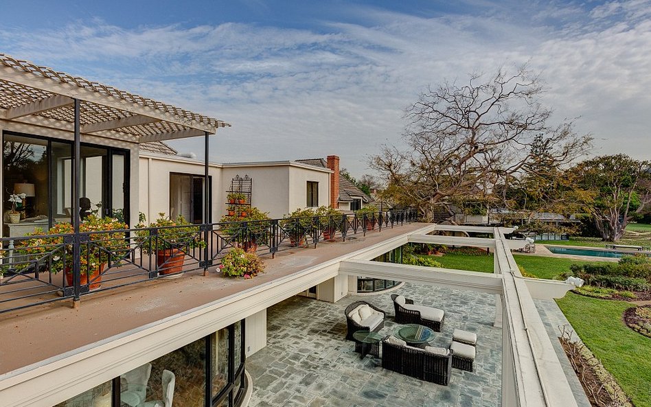Na terenie posiadłości znajduje się typowy kalifornijski ogród, basen, kort tenisowy oraz staw.