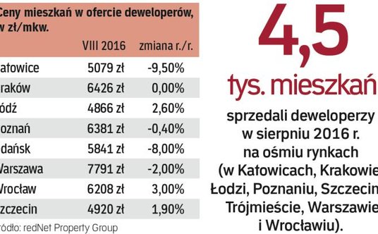 – Wyczerpywanie się pieniędzy na dopłaty w ramach „MdM" może dotknąć mniejszych deweloperów budujących tanie mieszkania – prognozuje Juroszek. – Z drugiej strony stopy procentowe są wciąż na niskim poziomie, co oznacza nisko oprocentowane lokaty. A to może się przełożyć na zwiększone zakupy inwestycyjne – prognozuje.