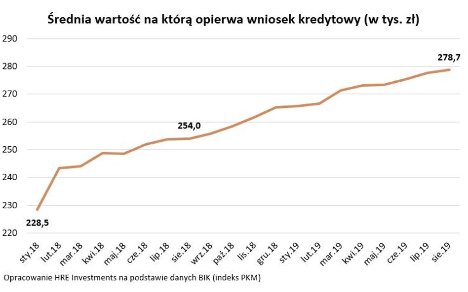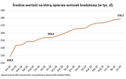 - Dobre dane BIK na temat popytu na kredyty mieszkaniowe to oczywiście dobra wiadomość dla banków czy deweloperów. Najnowszy odczyt sugeruje jednak też, że mieszkania nie przestają drożeć. Średnia wartość wnioskowanego kredytu wzrosła bowiem, rok do roku, o 10 proc. - mówi Bartosz Turek, główny analityk HRE Investments. - Rynek nieruchomości ma to do siebie, że dane napływają z niego ze sporym opóźnieniem. I tak na przykład na wiarygodne dane o cenach sprzedaży mieszkań trzeba czekać kwartał lub dwa, a na informację o tym, ile mieszkań w ogóle sprzedano w kraju czas oczekiwania wydłużyć się może nawet do ponad roku. Właśnie dlatego tak pożądane są wszelkie wskaźniki wyprzedzające czy informacje sygnalne, które może nie z aptekarską dokładnością, ale za to bardziej na bieżąco sugerują, co aktualnie dzieje się na rynku - wyjaśnia.