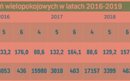 – Jedyną wyraźną zmianę widać w przypadku mieszkań sześciopokojowych, których powierzchnia systematycznie spada z 176 mkw. w 2016 roku do 144 mkw. obecnie – wskazuje ekspert RynkuPierwotnego. – Takie lokale mają jednak stosunkowo niewielką wagę statystyczną. Uwagę zwraca wyraźny wzrost liczby mieszkań czteropokojowych i w mniejszym stopniu pięcio-, sześciopokojowych (niepełne dane za 2019 r.). Wynikałoby z tego, że popyt na największe rodzinne mieszkania w Polsce rośnie przy braku presji (z wyjątkiem sześciu pokoi) na ograniczanie powierzchni. Amatorzy wielopokojowych mieszkań nie poszukują więc jak największej liczby pokoi na możliwie ograniczonej powierzchni, jak np. w przypadku lokali trzypokojowych.