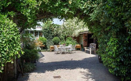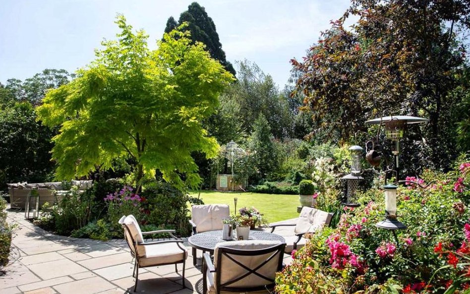 Wokół domu jest przepiękny zadbany ogród w stylu angielskim z tarasem i miejscem na stół. Jest też staw z fontanna w którym pływają kolorowe karpie.