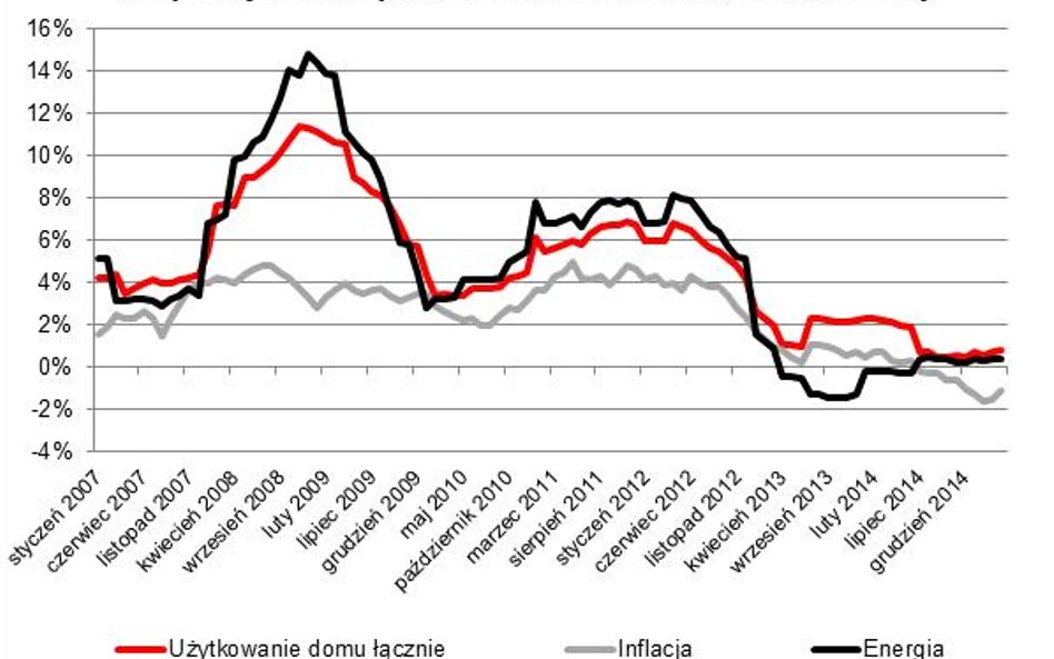 - Deflacja trwa już od dziesięciu miesięcy, co nie przeszkadza rosnąć kosztom utrzymania mieszkania. Te, patrząc na dane za ostatnie lata, zawsze rosną szybciej niż ogólny poziom cen - zauważa Bartosz Turek, analityk Lion's Banku. - Fakt, że mamy do czynienia z deflacją nie znaczy, że wszystko tanieje - podkreśla.