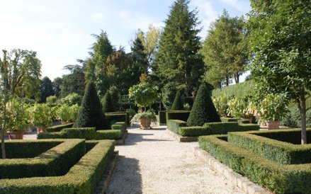 Wokół zamku jest wspaniały ogród - w tym symetryczny tzw. ogród włoski, ogród w stylu francuskim i ogród kwiatowy z kwiatami do wyrobu perfum. Cała posiadłość ma powierzchnię około 11 hektarów.