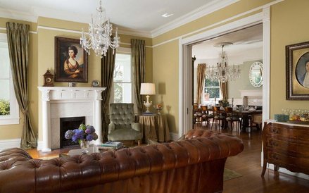 W domu jest 12 sypialni, każda z własną łazienką, poza tym jest duży salon, duża formalna jadalnia na 40 osób i mała prywatna jadalnia oraz kuchnia wyposażona w najnowocześniejszy sprzęt. Jest też biblioteka z z drewnianymi regałami i rzeźbionym kominkiem. W niektórych łazienkach są oryginalne, odrestaurowane secesyjne wanny. Poza tym w domu jest 12 kominków, a w zabytkowej powozowni jest garaż z czterema miejscami postojowymi i miejscami do ładowania Tesli oraz aż trzy pralnie.