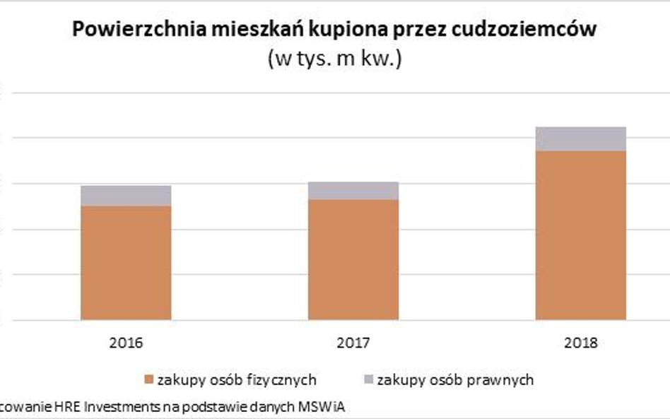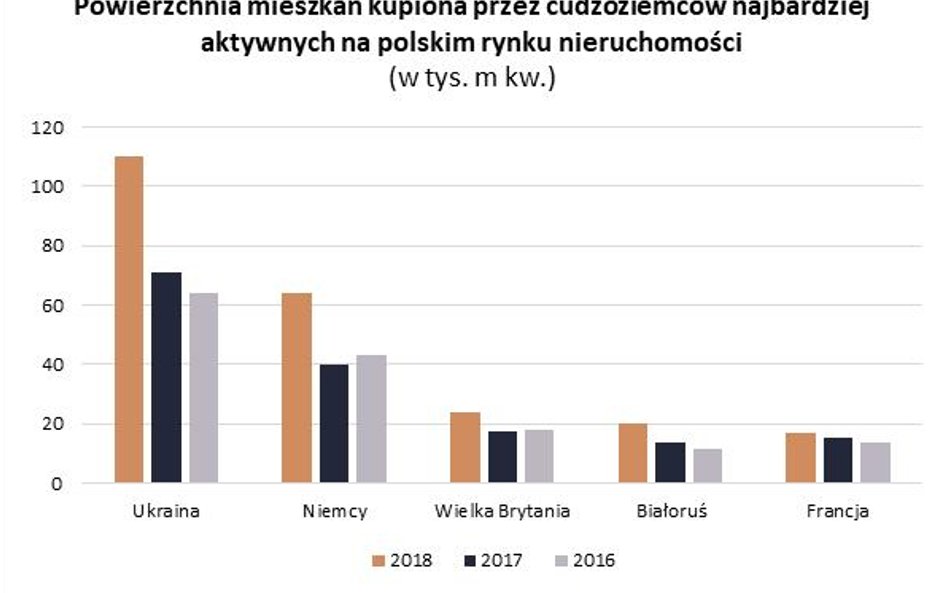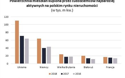 Jak podkreśla Bartosz Turek, główny analityk HRE Investments, powołując się na dane resortu, Ukraińcy kupują u nas prawie dwa razy więcej mieszkań niż Niemcy.  - Łącznie cudzoziemcy kupili 426,2 tys. mkw. mieszkań. To oznacza, że przeciętny lokal miał 60,5 mkw. Dla porównania -dane GUS pokazują, że przeciętne mieszkanie kupione w Polsce w 2017 roku (nowszych danych wciąż nie ma) miało 53,6 mkw.- wskazuje analityk.