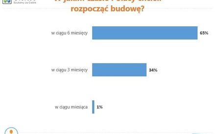 Z analiz wynika, że osoby planujące budowę drewnianego domu na rozpoczęcie prac budowlanych potrzebują najczęściej kilku miesięcy. Prawie dwie trzecie z nich chce rozpocząć je w ciągu pół roku, a 34 proc. - trzech miesięcy. Tylko 1 proc. ankietowanych jest gotowych przystąpić do prac już w ciągu miesiąca.