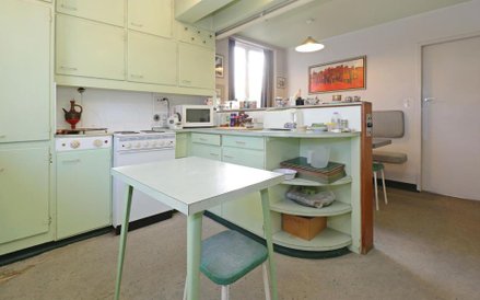 Ten jednopiętrowy dom został wybudowany dla lekarza i jego rodziny. Jeszcze o niedawna mieszkał w nim jego 91-letni syn, który w zasadzie niewiele zmienił przez te lata w wystroju domu. Kuchnia i łazienki nadal wyglądają oryginalne, wyposażone w meble i sprzęt z lat 50. zeszłego wieku. W salonie wciąż stoją meble z lat 60. z telewizorem z tego okresu. Nadal sprawnym.