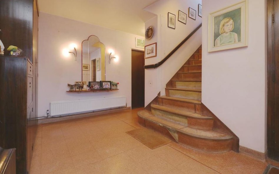 Na parterze znajduje się garaż, niewielki salon, hol z szafami, łazienka, taras oraz komórka na sprzęt ogrodowy. Na pietrze jest kuchnia z częścią jadalną i szafkami w kolorze pistacji, salon, sypialnia i łazienka oraz balkon od strony ogrodu.