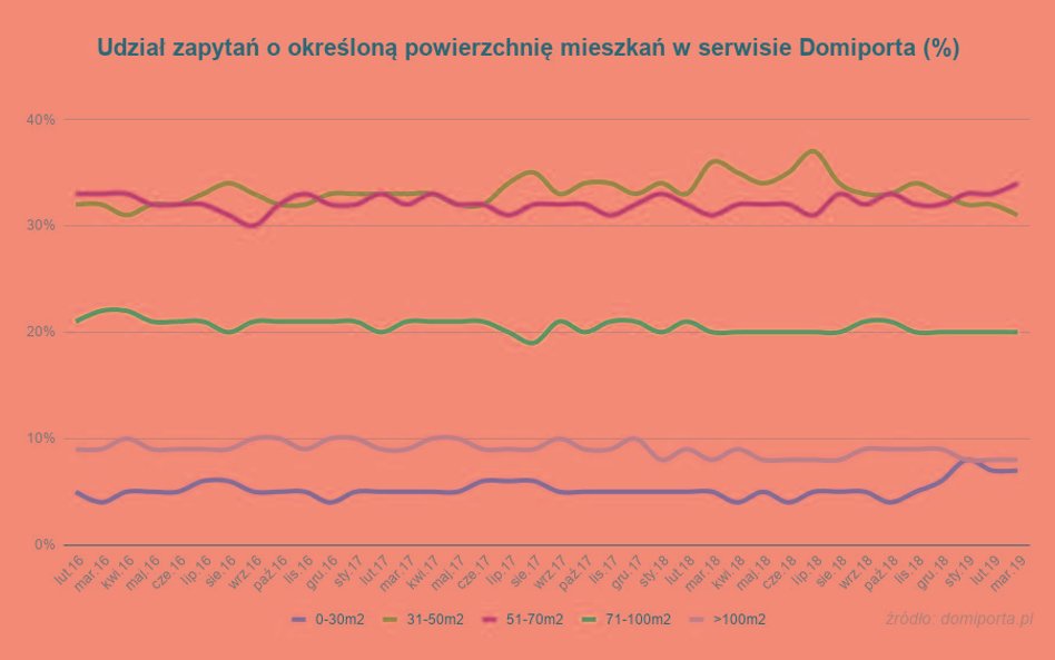 Klienci szukają nie tylko większej liczby pomieszczeń, ale i większej powierzchni. - Tutaj zmiany są widoczne od kilku miesięcy. W I kwartale, po raz pierwszy od trzech lat, najbardziej poszukiwane były lokale o powierzchni 51-70 mkw, zyskując wyraźną przewagę nad drugimi w kolejce lokalami o powierzchni 31-50 mkw. - podaje Bartłomiej Baranowski. - Trudno przewidzieć, czy ta widoczna zmiana w preferencjach wyszukiwania mieszkań utrzyma się dłużej. Wiele zależy od zachowania cen mieszkań, wzrostu średniej pensji czy dalszego utrzymywania stóp procentowych na tym samym poziomie. Kolejne miesiące pokażą, czy mieliśmy do czynienia jedynie z krótkotrwałym wahnięciem czy raczej jesteśmy świadkami nowej tendencji na rynku mieszkaniowym.
