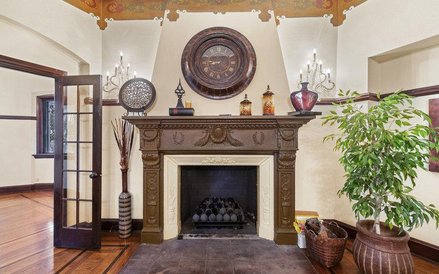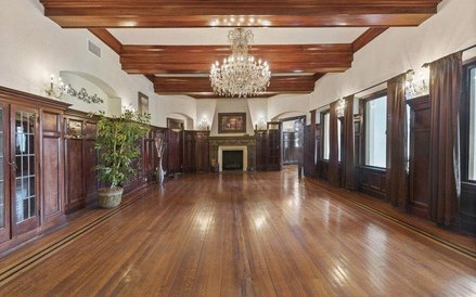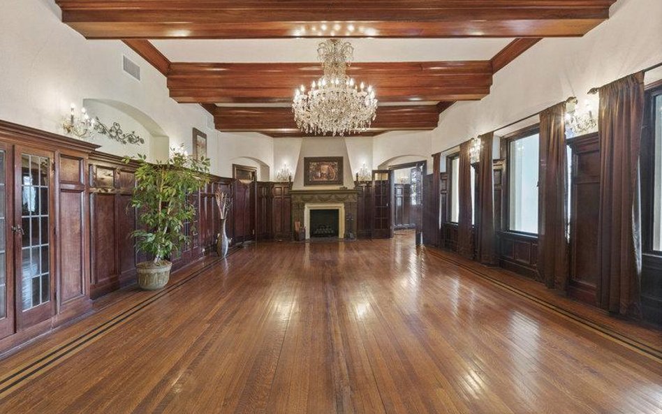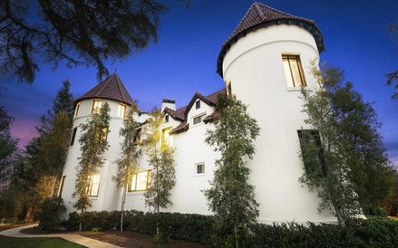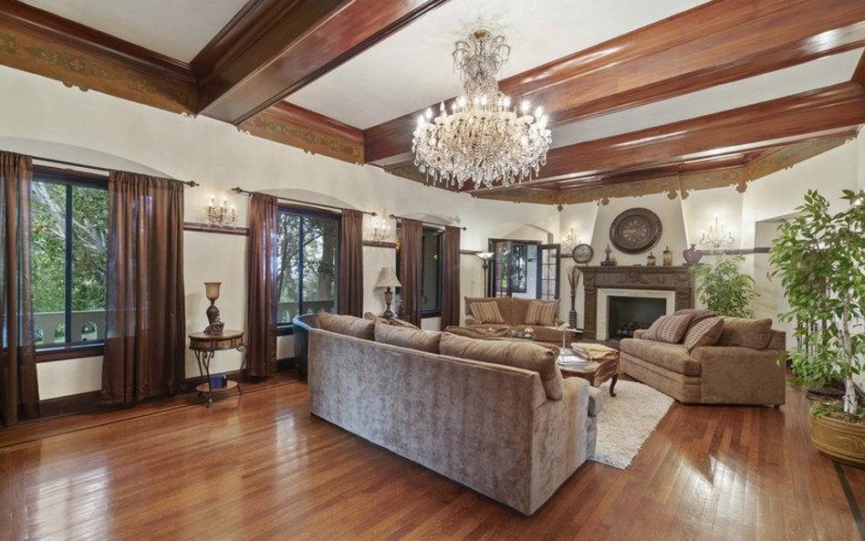 Pyrenees Castle, zbudowany w latach 20. zeszłego wieku - bardziej przypomina francuski zamek z doliny Loary, niż kalifornijską posiadłość. Wnętrza są utrzymane w stylu tradycyjnym z drewnianymi lub marmurowymi podłogami, drewnianymi belkami stropowymi, białymi ścianami pokrytymi muralami oraz imponującymi żyrandolami. W dużym salonie jest duży kominek. W domu jest 9 sypialni, 10 łazienek, dwie kuchnie oraz tzw. pokój kredensowy, duża jadalnia, a także salon fryzjerski, sala zabaw i dwa biura. Jest też oddzielna część mieszkalna dla służby oraz garaż na cztery samochody.
