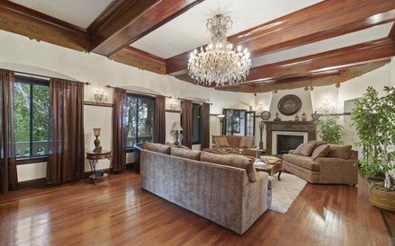 Dwupiętrowy dom ma powierzchnię ponad 800 metrów kwadratowych i stoi na działce o powierzchni niemal 10 tys. metrów kwadratowych. Z okien domu rozciąga się przepiękny widok na dolinę San Gabriel. Posiadłość jest otoczona ogrodem z fontannami, a do domu prowadzi zadrzewiona aleja zaczynająca się wysoka bramą.