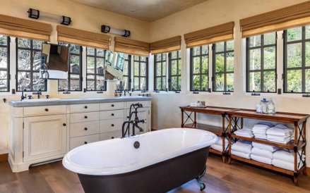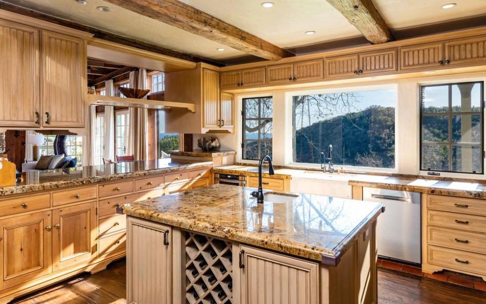 Imponujący dom - o powierzchni ponad 600 metrów kwadratowych - stoi na działce o powierzchni 22 tys. metrów kwadratowych i ma pięć sypialni, pięć łazienek, kuchnia we francuskim stylu rustykalnym, jadalnia oraz duży salon z wyjściem na taras i dużym, kamiennym kominkiem. Na terenie posiadłości jest też dom gościnny i domek kąpielowy przy jednym z dwóch basenów na wolnym powietrzu oraz siłownia, a także garaż na trzy samochody.