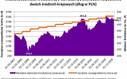 Dodaje, że zdolność kredytowa modelowej rodziny jest nieznacznie większa niż przed miesiącem. Rodzina może też pożyczyć ok. 44 tys. zł więcej niż przed rokiem.