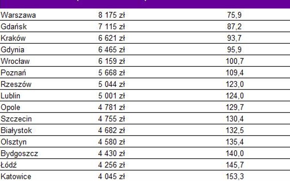 Ekspert podaje przykład. - Gdyby rodzina chciała wykorzystać posiadaną zdolność kredytową do granic możliwości, to mogłaby kupić całkiem sporą nieruchomość. Problem w tym, że zaciągnięcie kredytu w kwocie 496 tys. zł wymaga sporych zasobów gotówki. Na sam wkład własny – przy założeniu 20-proc. wkładu – trzeba by przeznaczyć 124 tys. zł - wyjaśnia. - To oznacza, że rodzina wydałaby na lokum bez mała 620 tys. zł. Taka kwota wystarczyłaby na zakup 76 mkw. lokum w stolicy, ponad 100 metrów we Wrocławiu i Poznaniu, ale też prawie 180 metrów w Zielonej Górze – wynika z szacunków Open Finance opartych o dane NBP na temat cen używanych mieszkań.