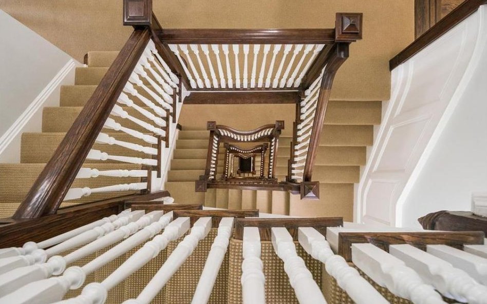Nowy właściciel będzie mógł cieszyć się drewnianymi podłogami, dziesięcioma kamiennymi kominkami, salonem z wyjściem na niewielki ogród, dużym i jasnym pokojem jadalnym, nowoczesna kuchnią i obszerną biblioteką. W piwnicy jest siłownia, kino, zaplecze techniczne i pokoje dla służby.