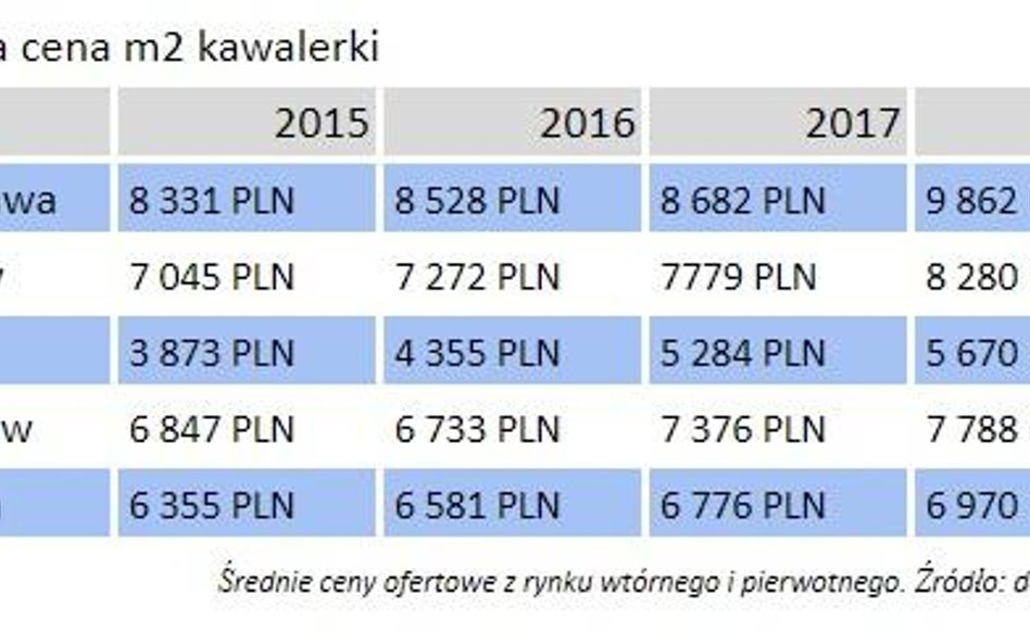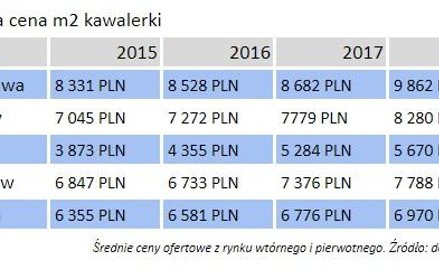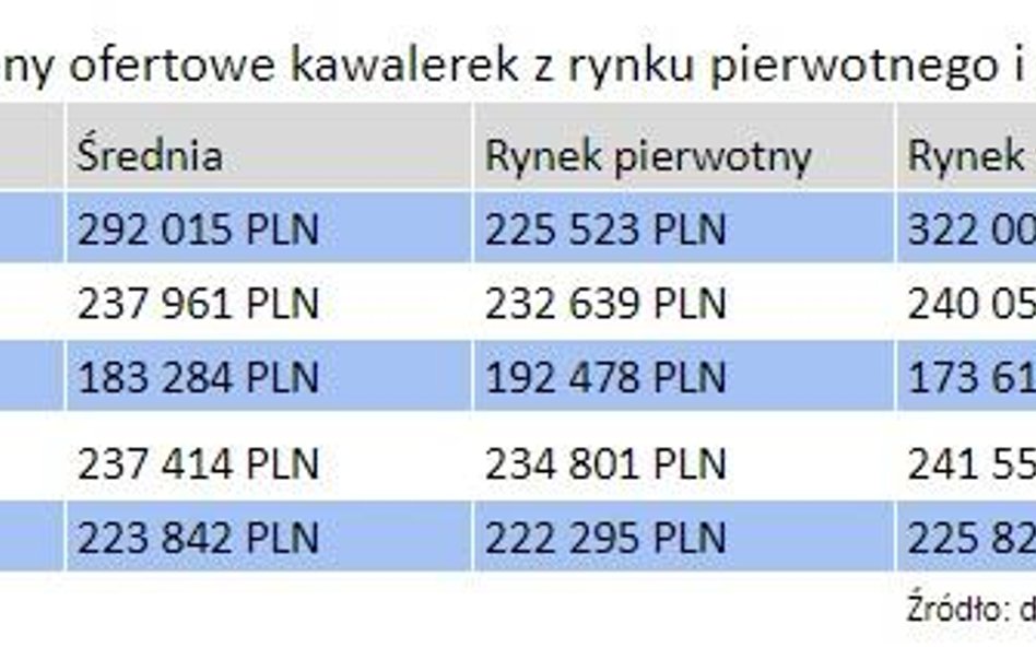 45 tys. zł - tyle, mógłby zarobić właściciel 30-metrowej kawalerki w Warszawie kupionej przed trzema laty, gdyby zdecydowałby się na jej sprzedaż dzisiaj. - W ostatnich trzech latach mieszkania jednopokojowe zdrożały w stolicy o ponad 18 proc. - mówi Bartłomiej Baranowski. - Uśrednione tempo wzrostu dla pięciu największych miast, wskazuje na podwyżkę cen kawalerek o ponad jedną piątą w ciągu trzech lat. Kawalerki drożały zdecydowanie najszybciej wśród wszystkich typów mieszkań poddanych analizie. Na drugim miejscu uplasowały się apartamenty wielopokojowe apartamenty z wynikiem niecałych 15 proc.