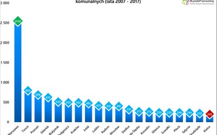 Dokładne informacje o aktywności mieszkaniowej samorządów (pochodzące z Banku Danych Lokalnych GUS) wskazują, że pomiędzy 2007 rokiem oraz 2017 rokiem Warszawa była bezkonkurencyjna pod względem liczby ukończonych lokali komunalnych. W stolicy powstało bowiem 2,5 tys. mieszkań.