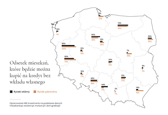 Obliczając limity dziś, widać wyraźnie, że w niektórych miejscowościach będzie łatwo z programu skorzystać, a w innych będzie to praktycznie niemożliwe. – W wielu miastach program będzie działał jedynie teoretycznie, bo ofert kwalifikujących się do kredytów bez wkładu będzie bardzo mało. Przykładem mogą być Kraków czy Lublin – wskazuje Bartosz Turek. – No i jak wytłumaczyć, że limity dla Gdyni czy Sopotu będą znacznie niższe niż dla Gdańska? Z drugiej strony nawet w gronie miast wojewódzkich znajdziemy takie, gdzie ponad połowa albo nawet niemal wszystkie oferty kwalifikowałyby się do wsparcia. To Gorzów Wielkopolski, Zielona Góra, Olsztyn czy Bydgoszcz.