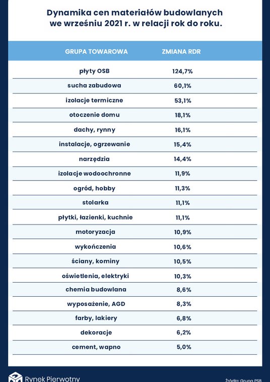 - Jeżeli do tej pory mówiło się o szybujących cenach materiałów budowlanych, to po najnowszej publikacji PSB bardzo trudno będzie dobrać odpowiedni przymiotnik opisujący dynamikę hossy na tym rynku. Co gorsza, nie jest to jedyna zła informacja dla potencjalnych klientów hurtowni budowlanych.