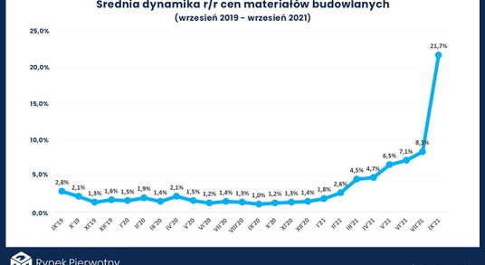 Po takim wzroście w ciągu siedmiu miesięcy tego roku, z końcem tegorocznych wakacji można było mieć nadzieję na początek hamowania dynamiki wzrostów cen materiałów budowlanych. Tymczasem Grupa PSB po jednomiesięcznej przerwie (brak danych za sierpień) opublikowała dane za wrzesień. Wynika z nich gigantyczny wręcz skok średniej dynamiki cen z 8,3 proc. w lipcu do prawie 22 proc. we wrześniu.