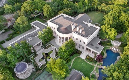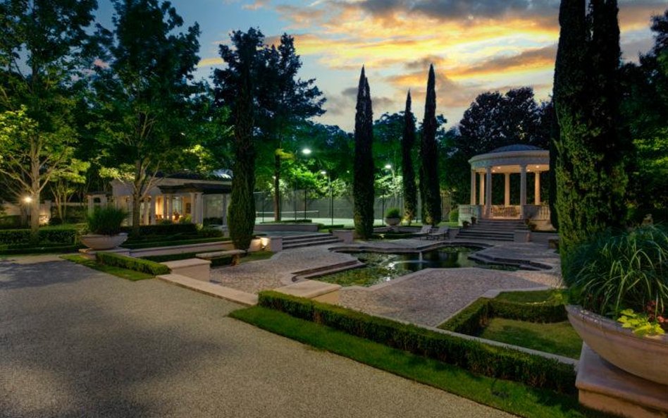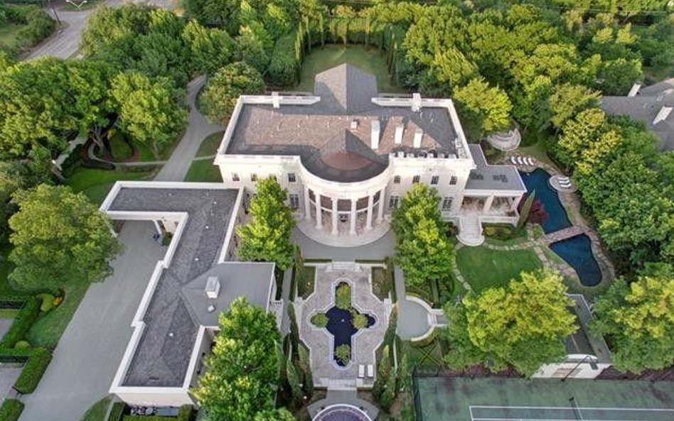Cała posiadłość, znajdująca się w prestiżowej dzielnicy Dallas Preston Hollow - ma powierzchnię pona 12 tys. metrów kwadratowych, na których poza domem jest też wspaniały ogród z basenem, garaż na sześc samochodów - w tym dwie limuzyny, kort tenisowy i staw z japońskimi karpiami koi oraz altana, dom kąpielowy oraz kuchnia letnia.