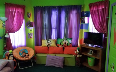 Ma siedem sypialni, sześc łazienek - wszystkie bez wyjątku ozdobione gadżetami Disneya.