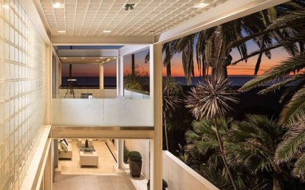 Z piętrowego domu rozciąga się wspaniały widok na Pacyfik oraz wyspę Catalina.