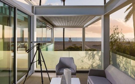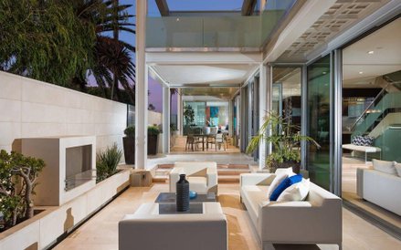 Balboa Beach House znajduje się w Newport Beach w Kalifornii. Stoi nad samą plażą i jest cały przeszklony.