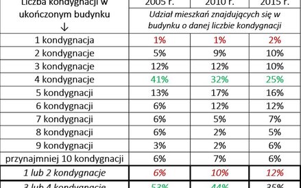 Przybywa lokali usytuowanych blisko gruntu oraz „M" z wyższych kondygnacji (piątej, szóstej oraz siódmej). Taki wzrost zróżnicowania nowych mieszkań wynika z faktu, że deweloperzy wznoszą mniej tradycyjnych jednobryłowych budynków. Na rynku możemy znaleźć coraz więcej inwestycji, które stanowią połączenie kilku budynków mieszkalnych o różnej wysokości (np. trzypiętrowego, pięciopiętrowego i siedmiopiętrowego).