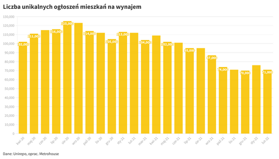 We Wrocławiu, jak podaje Metrohouse, wynajem mieszkania o powierzchni do 50 mkw. w dobrej lokalizacji kosztuje ok. 2,2 – 2,4 tys. zł miesięcznie. – Podobnie jak w innych miastach trudno o lokal na miesiąc lub dwa – mówi Karolina Wasilewska-Buraczyk. Część właścicieli w ogóle nie chce wynajmować lokali uchodźcom, nawet na długo. - We Wrocławiu możliwości wynajmu się kończą. Uchodźcom proponowane są nieruchomości w innych pobliskich miejscowościach, jednak priorytetem dla nich, z uwagi na dostępność rynku pracy, jest cały czas Wrocław – wskazują eksperci Metrohouse.