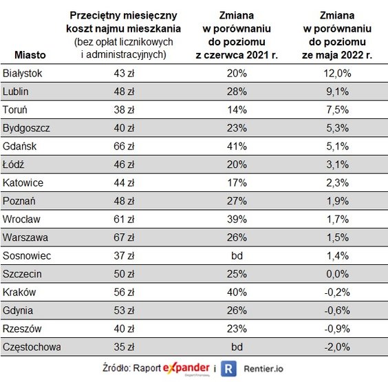 Eksperci zwracaj a też uwagę na Lublin, gdzie przeciętne czynsze od maja do czerwca wzrosły o 9 proc., do 48 zł za mkw. i Toruń (7,5 proc., średnio 38 zł za mkw.).