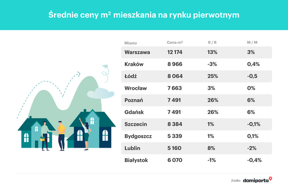Analizując ceny mkw. lokali w ujęciu miesięcznym, wzrosty nie są już tak duże, a nawet widać spadki. - O 2 proc. spadła cena mkw. mieszkań w Lublinie – podaje analityk Domiporty. - Delikatną korektę cen mieszkań z rynku pierwotnego odnotowaliśmy także w Łodzi (-0,5 proc.), Białymstoku (-0,4 proc.) i Szczecinie (-0,1 proc.). To niewielkie zmiany, lecz po wielu kwartałach nieprzerwanych wzrostów cen, nawet delikatna korekta jest traktowana bardzo poważnie – zaznacza.