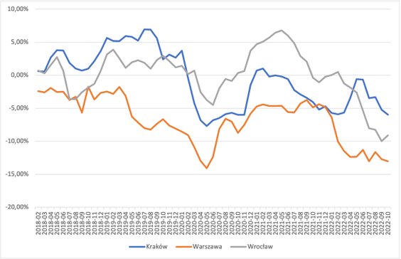 Podkreśla, że „w czasie tzw. rynku kupującego rośnie oczywiście potencjał negocjacyjny nabywców". - W trudnych czasach łatwiej znaleźć sprzedającego „pod ścianą" - zarówno na rynku wtórnym jak i pierwotnym – mówi Marcin Krasoń.