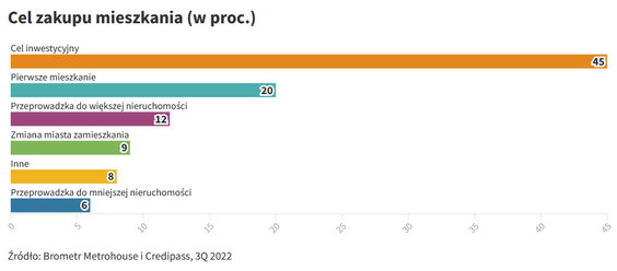 Z analiz Metrohouse i Credipass wynika, że klienci w wieku poniżej 30. roku życia odpowiadają za zaledwie 11 proc. transakcji zakupu mieszkań w III kwartale tego roku. - Osoby rozpoczynające życie „na swoim" i myślące o zakupie mieszkania, nie mają odpowiedniej zdolności kredytowej, brakuje im pieniędzy na wkład własny, boleśnie odczuwają też wzrost stóp procentowych, które przekładają się na wysokość przyszłych rat kredytu – mówi Marcin Jańczuk. - Sytuacji nie poprawił także wprowadzony w maju tego roku rządowy program „Mieszkanie bez wkładu własnego". Nie jest dostosowany do aktualnej sytuacji rynkowej. Dlatego też mieszkania kupują głównie osoby w wieku od 30 do 40 lat. (34 proc.). Nie ma co liczyć, że sytuacja zmieni się istotnie w najbliższej przyszłości – ocenia.