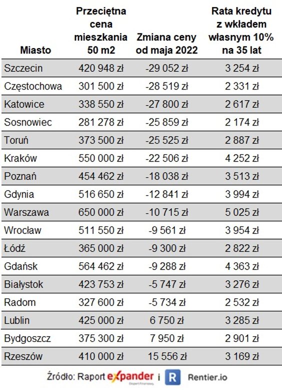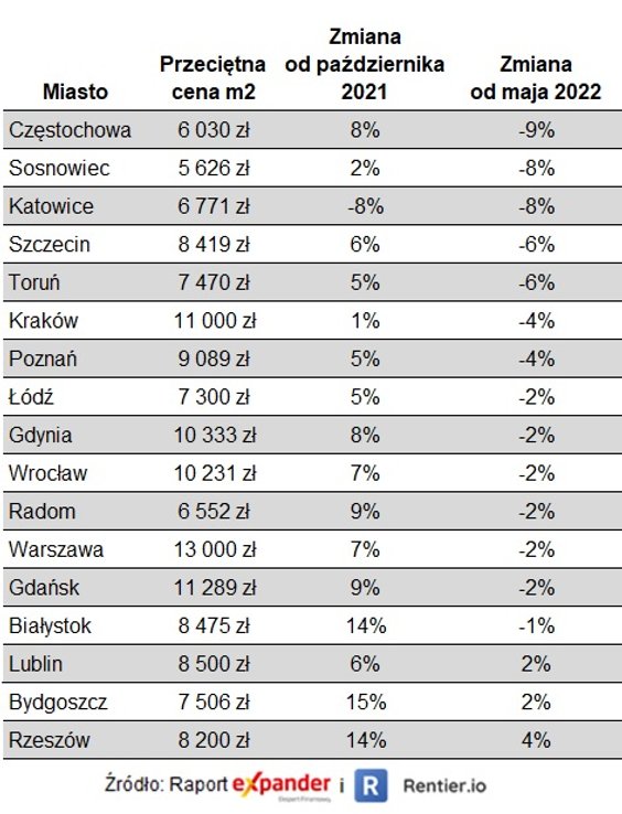 Z raportu Expandera i Rentier.io wynika, że w porównaniu z majem ceny mieszkań spadły aż w 14 z 17 miast. - W większości przypadków spadki są jednak niewielkie. Ceny spadły średnio o 3,4 proc. Najbardziej staniały lokale w Częstochowie (8,6 proc.), Sosnowcu (8,4 proc.) i Katowicach (7,5 proc.) – wskazuje Jarosław Sadowski, ekspert Expandera. - Drożej niż w maju było tylko w Rzeszowie (4 proc.), Bydgoszczy (2 proc,) i Lublinie (2 proc.). - dodaje.