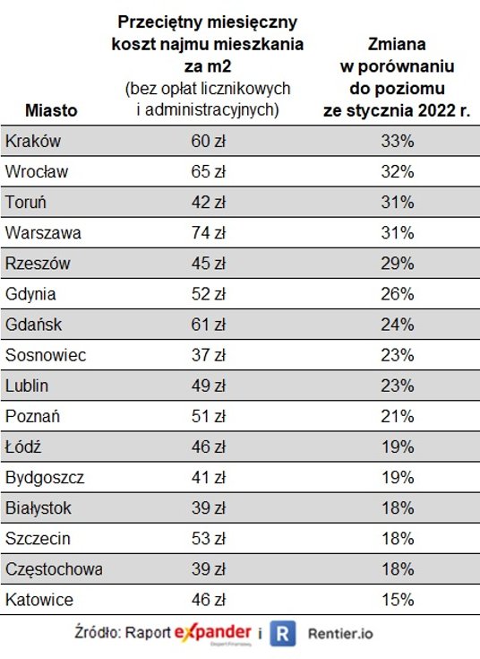 Z raportu Expandera i Rentier.io wynika, że pod wpływem tych czynników od stycznia do listopada stawki najmu wzrosły we wszystkich 16 badanych miastach. - W 2023 r. sytuacja prawdopodobnie będzie już dużo bardziej stabilna – przewidują autorzy raportu.
