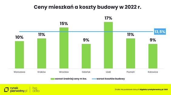 Marek Wielgo zwraca uwagę, że w ostatnim roku w większości największych miast średnia mkw. mieszkań wzrosła mniej niż podawany przez GUS wskaźnik kosztów budowy. - Przy czym w przypadku Łodzi i Wrocławia średnią podbiły drogie – jak na te rynki – mieszkania, które deweloperzy zaczęli wprowadzać do sprzedaży – mówi ekspert. - Np. w Łodzi jeszcze rok temu w ogóle nie było w ich ofercie mieszkań z ceną powyżej 12 tys. zł za mkw. Obecnie mają w niej 7-proc. udział. Z kolei we Wrocławiu odsetek mieszkań z ceną przekraczającą ten pułap wzrósł w 2022 r. z 18 do 40 proc.