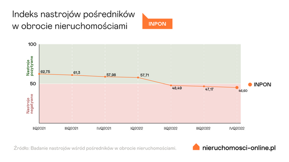 -Rynek nieruchomości powoli się normuje, ale przy znacznie mniejszej liczbie transakcji – wynika z badania nastrojów pośredników (INPON) po czwartym kwartale 2022 r. Indeks nastrojów pośredników, czyli barometr atmosfery na rynku, publikuje portal Nieruchomosci-online.pl.