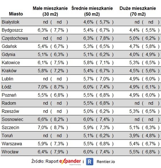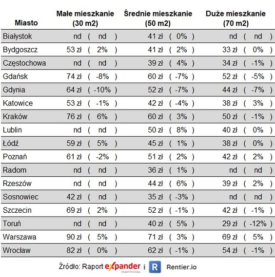 Ale już licząc rok do roku, stawki są wyraźnie wyższe we wszystkich badanych miastach. Najem dużych mieszkań zdrożał w tym czasie o 24 proc. Licząc kwartał do kwartału, na rynku mieszkań o średniej wielkości dominują wzrosty stawek najmu. - W porównaniu z trzecim kwartałem drożej jest w dziesięciu miastach, spadki pojawiły się w sześciu, w jednym się nie zmieniły – wskazują autorzy raportu. Najmocniej najem takich mieszkań zdrożał w Lublinie (8,2 proc.), Rzeszowie (6,1 proc.) i Toruniu (5,5 proc.). Największe spadki odnotowaliśmy w Gdyni (-7,1 proc.), Gdańsku (-6,7 proc.) i Katowicach (-4,2 proc.). W porównaniu z sytuacją sprzed roku stawki we wszystkich badanych miastach są dużo wyższe. Średnio najem w tym segmencie jest droższy niż przed rokiem o 26 proc.