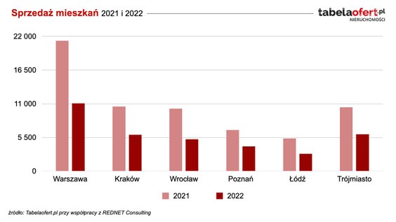 Autorzy raportu przypominają, że rynek nieruchomości rósł do końca 2021 r. – Załamania, które prognozowało wielu analityków, nie przyniosła nawet pandemia, choć sprzedaż mieszkań spadła o 18,6 proc. r./r. Jednak na koniec 2021 r. rynek nadrobił straty z niewielką nawiązką – mówią analitycy. - Kryzys przyszedł w 2022 r. wraz z atakiem Rosji na Ukrainę.