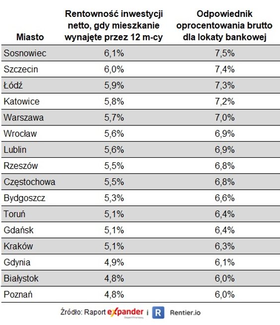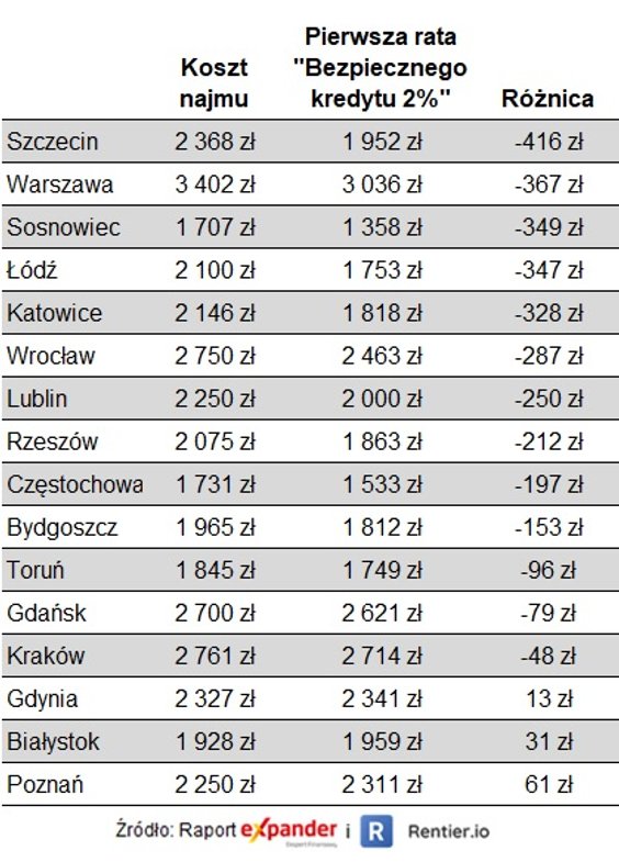 Zdaniem autorów raportu popyt na wynajem mieszkań w kolejnych miesiącach może spaść. Jak tłumaczą, w większości miast czynsz będzie wyższy niż rata kredytu na 2 proc.