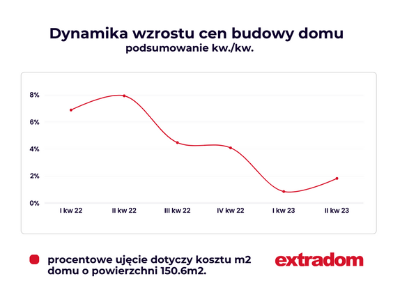 Wiosna to tradycyjnie okres intensywnych prac budowlanych. Po spowolnieniu w IV kw. 2022 r. i zanotowanym w I kw. 2023 r. pierwszym od dwóch lat nieznacznym spadku kosztów budowy domu w stolicy i woj. zachodniopomorskim i wielkopolskim, można się było spodziewać ponownego ich wzrostu wywołanego natężeniem prac i rosnącym zapotrzebowaniem na materiały i ekipy budowlane.
