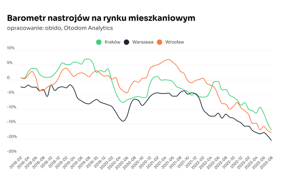 Marcin Krasoń zaznacza, że o ile jeszcze np. rok temu mieliśmy spore zróżnicowanie, jeśli chodzi o wysokość wskaźnika w Krakowie, Warszawie i Wrocławiu, o tyle dziś jego notowania w tych miastach zbliżyły się do siebie.